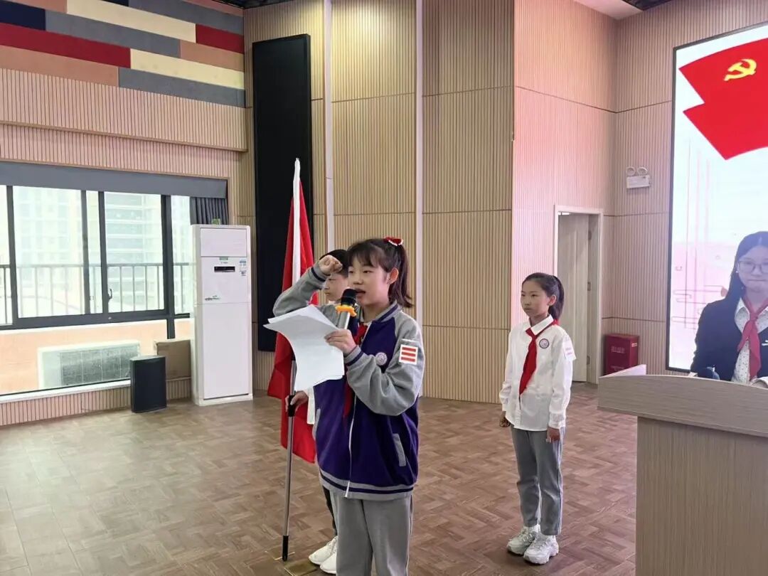 学校党总支书记王晶晶宣读决议草案并组织表决,向全体队员提出期望,鼓励大家牢记习近平总书记嘱托,努力成长为有理想、有本领、有担当的时代新人。