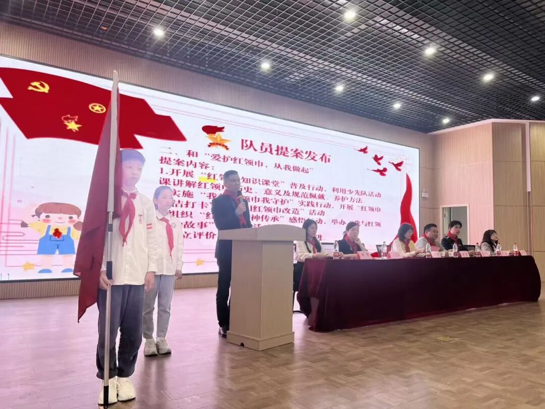 在提案发布与校长答复环节,队员们围绕校园学习与生活积极建言,陈亮校长逐一回应,将“童言心声”转化为可行方案,切实增强了队员的参与感和获得感。