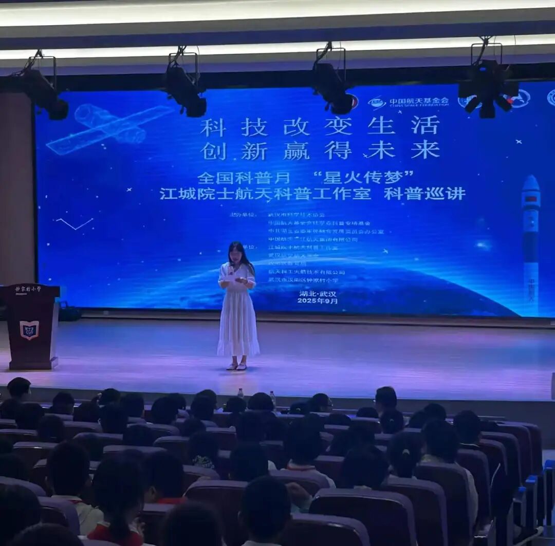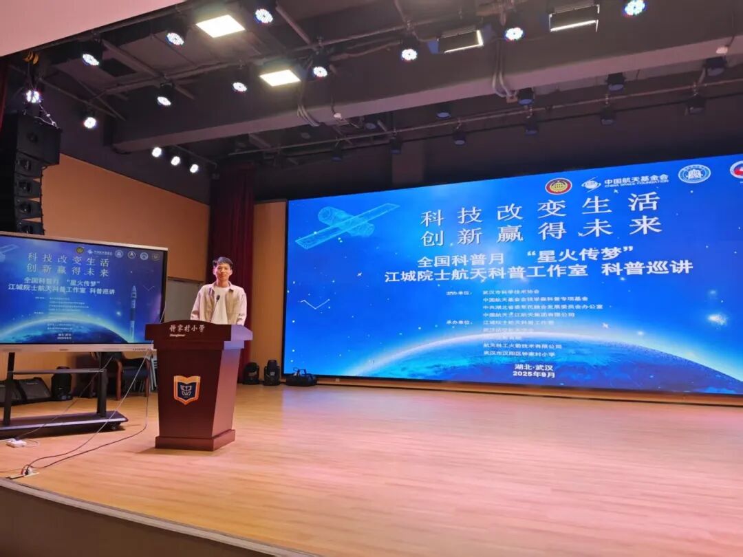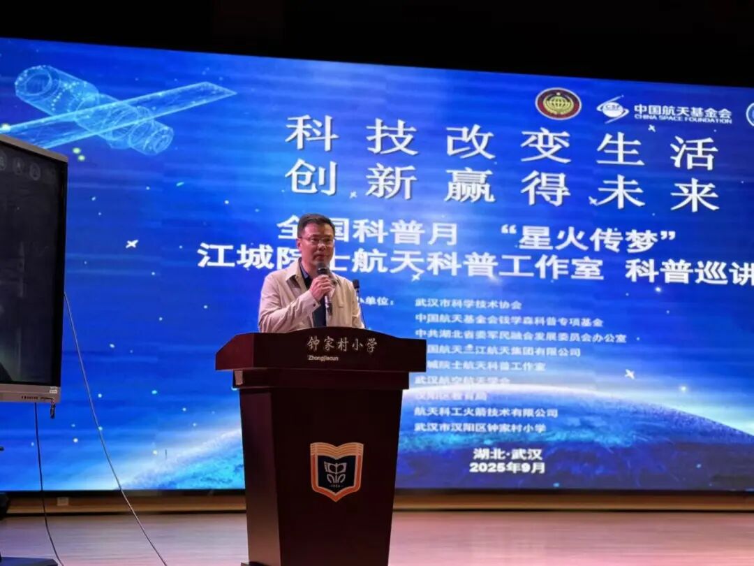 9月19日下午,在全国科普月期间,"星火传梦"航天科普巡讲活动在汉阳区钟家村小学举行。本次活动由武汉市科学技术协会、中国航天基金会钱学森科普专项基金、中共湖北省委军民融合发展委员会办公室、中国航天三江航天集团有限公司联合主办,汉阳区教育局等单位共同承办。