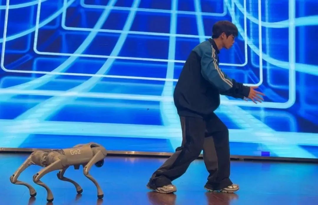 △情智学子与机器狗斗舞。