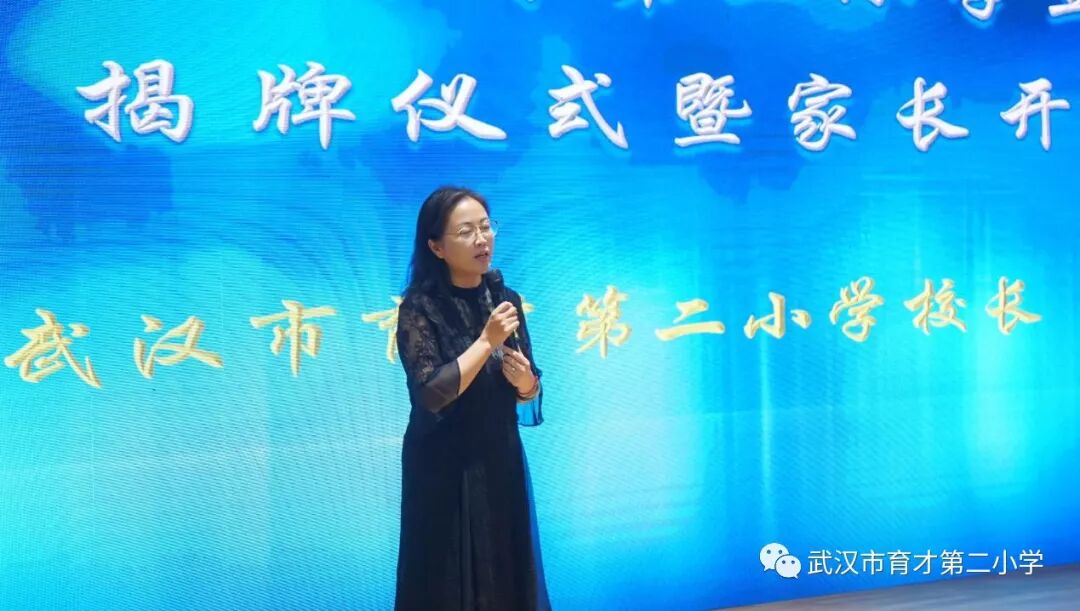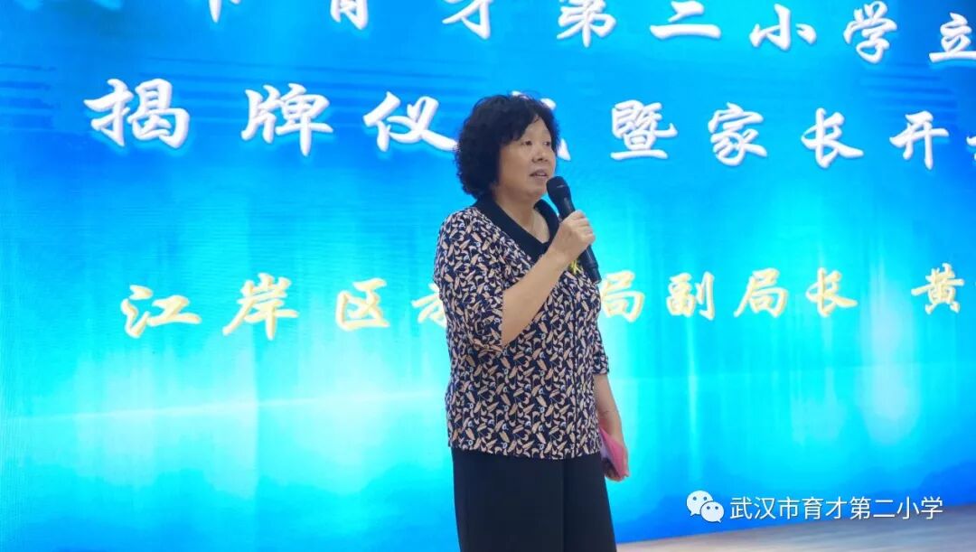 参观结束后,所有的家长和老师来到一楼梦想剧场,参加揭牌仪式。在台北路学校武术队精彩的表演后,揭牌仪式正式拉开帷幕。区委区政府十分重视本次揭牌仪式,黄运萍副局长首先强调江岸区教育局对立德校区建设的重视,并要求育才二小对立德校区要进行“六个一体化”管理,要求育才二小调配最得力的行政班子到立德校区进行规范管理,选派各学科最优秀的中青年骨干教师在立德校区任教,让孩子们享受到育才二小最令人称道的高质量教育。