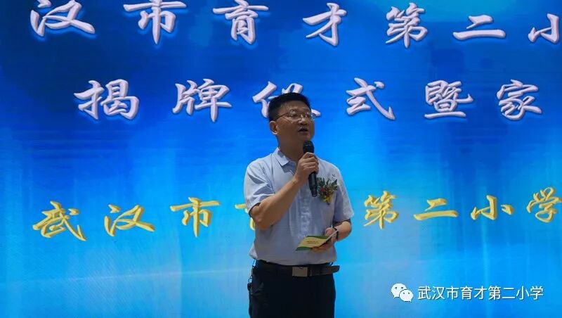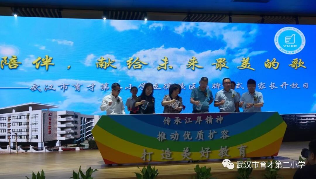 在会场两百多位一年级新生和家长的见证下,江岸区教育局黄运萍副局长、华润置地华中大区副总经理黄崇起、华润置地华中大区营销管理部总经理应晓磊、台北路学校校长刘永胜、育才二小李文华校长、党支部邱承军书记等嘉宾代表上台共同为育才二小立德校区揭牌。这也标志着育才二小立德校区正式成立,江岸区义务教育优质扩容走了更坚实的一步。