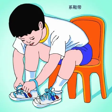 穿、脱:教会孩子独立穿脱衣物、鞋子,学会正确扣扣子、拉拉链、系鞋带等。