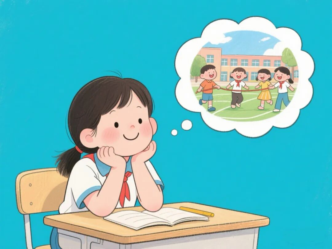 回想在学校开心的时刻(朋友、活动、学到的本领)。为新学期设定1-2个容易实现的小目标(如:交一个新朋友、每天认真完成作业),增加动力。