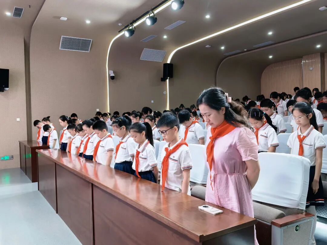 活动的最后,全体队员起立,举起右拳,庄严宣誓:“勿忘国耻,铭记历史!以国家大事为己任,坚决维护国家利益!”铿锵有力的誓言在报告厅内回荡,那是新时代少年对先辈的承诺,也是对未来的坚定回答。