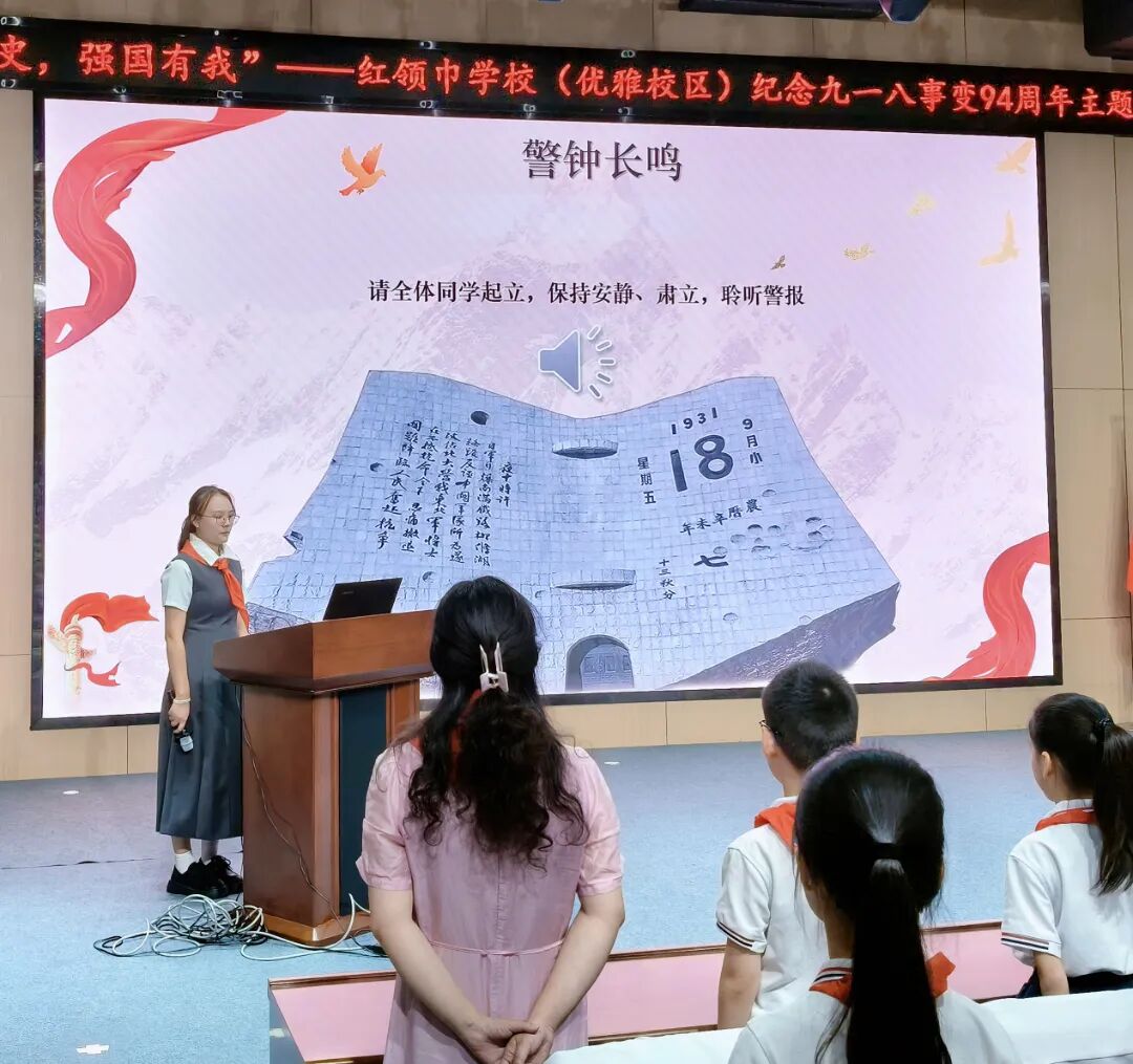为引导广大少先队员铭记历史、缅怀先烈,弘扬爱国主义精神,9月18日中午,“铭记历史,强国有我”——红领巾学校(优雅校区)纪念九一八事变94周年主题队会在学校报告厅隆重举行。三、四年级全体师生共同参加了此次庄严的活动。