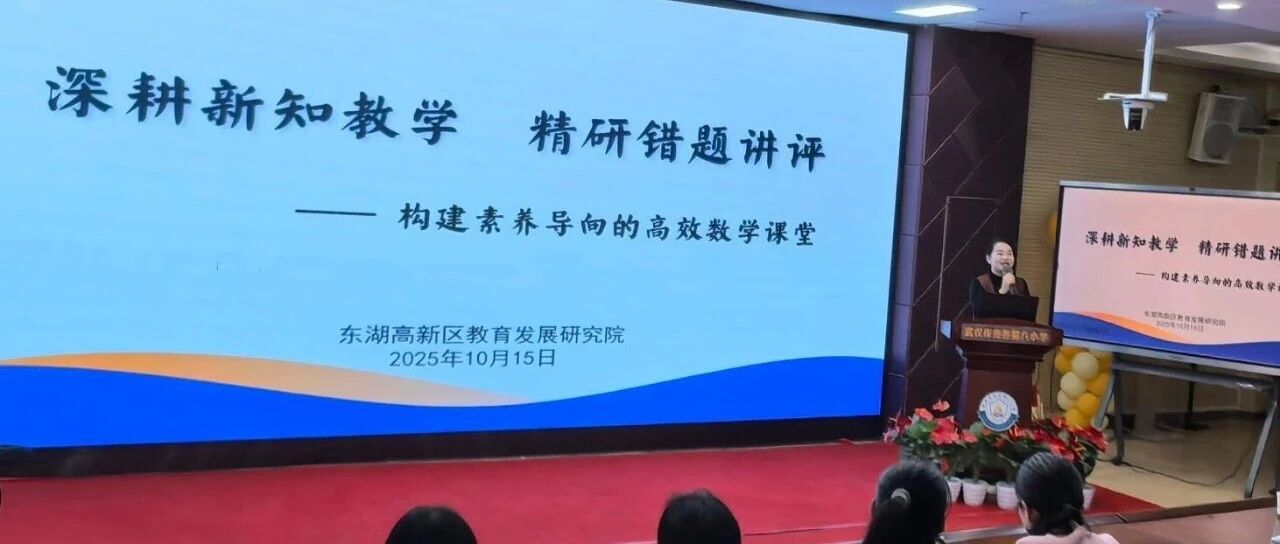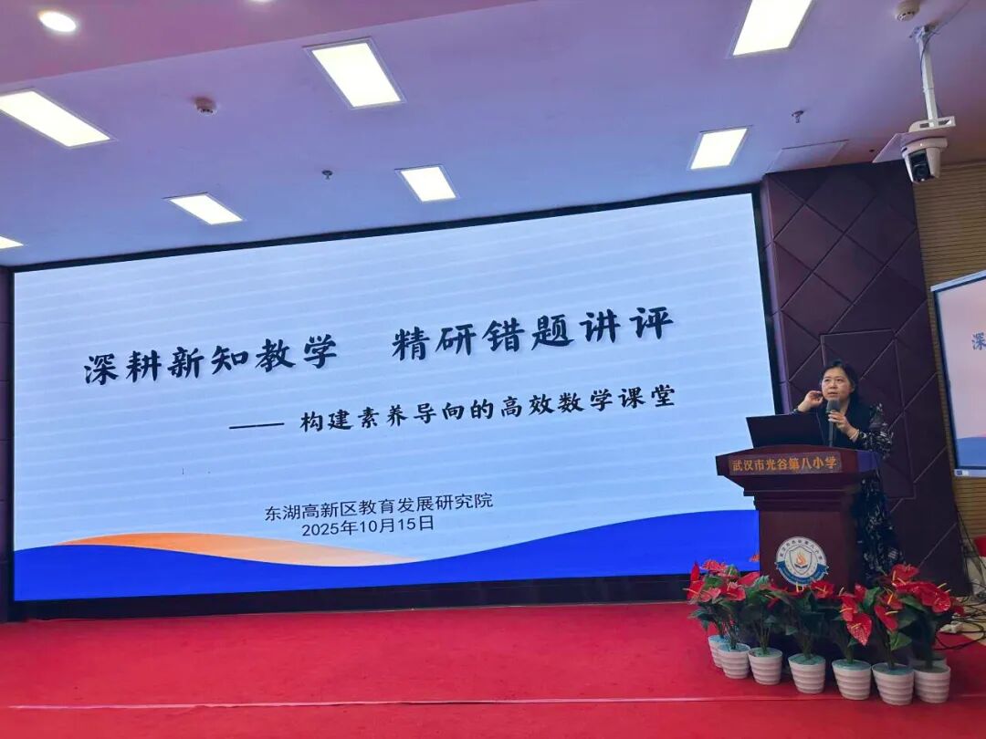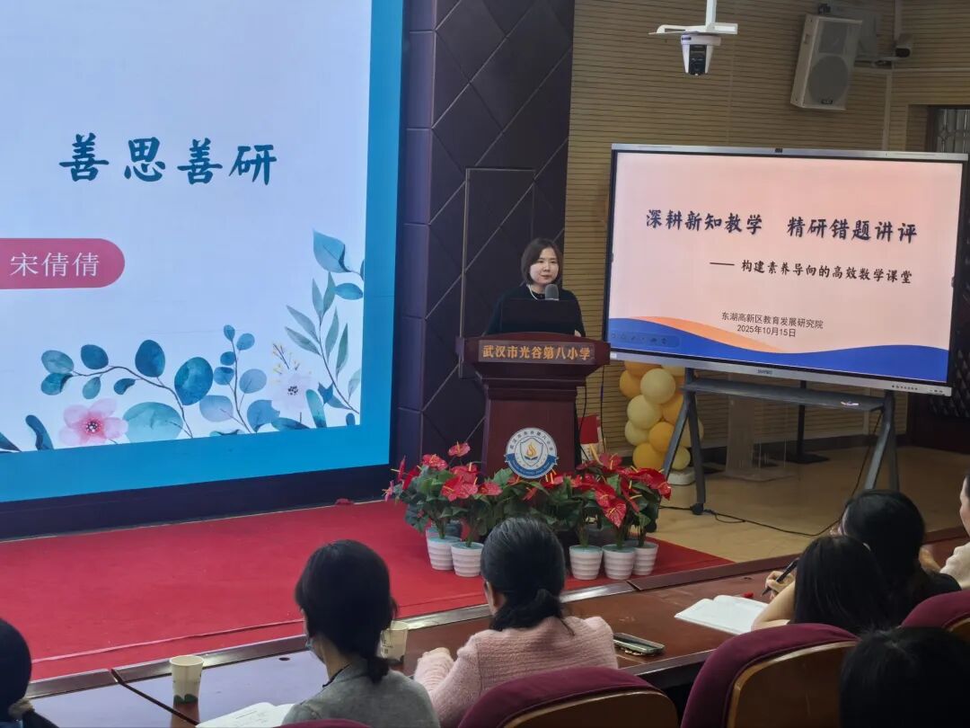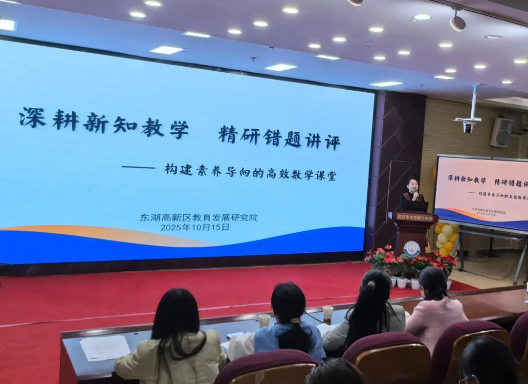 2025年10月15日,光谷八小成功承办东湖高新区小学高段数学教研活动。本次活动以“深耕新知教学,精研错题讲评”为主题,通过课例剖析、错题研究和专家引领三个环节,为全区高段数学教师提供了一场富有深度的教学研讨。此次活动由光谷八小行政服务中心主任陈萌老师主持。