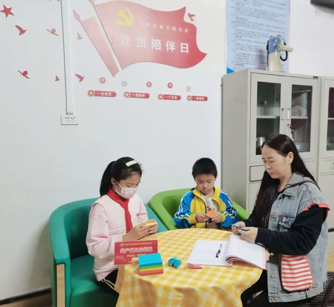 党支部推出“党员陪伴日”,放学后由党员教师轮流值守,提供作业辅导、兴趣拓展、师生共读等服务,累计服务学生超650人次,成为家校共育的暖心桥梁。同时,推行“我班有党员”亮牌行动,开展“三亮三比”(亮身份、亮承诺、亮职责;比党性、比业绩、比服务),建立党员导师制,为学生定制个性化成长方案,实现思想引领与成长陪伴“双覆盖”。