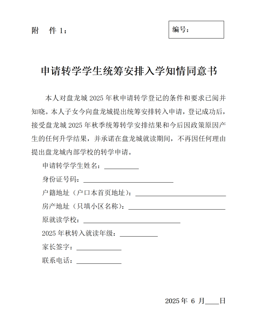 4.申请转学学生统筹安排入学知情同意书(见附件1)。